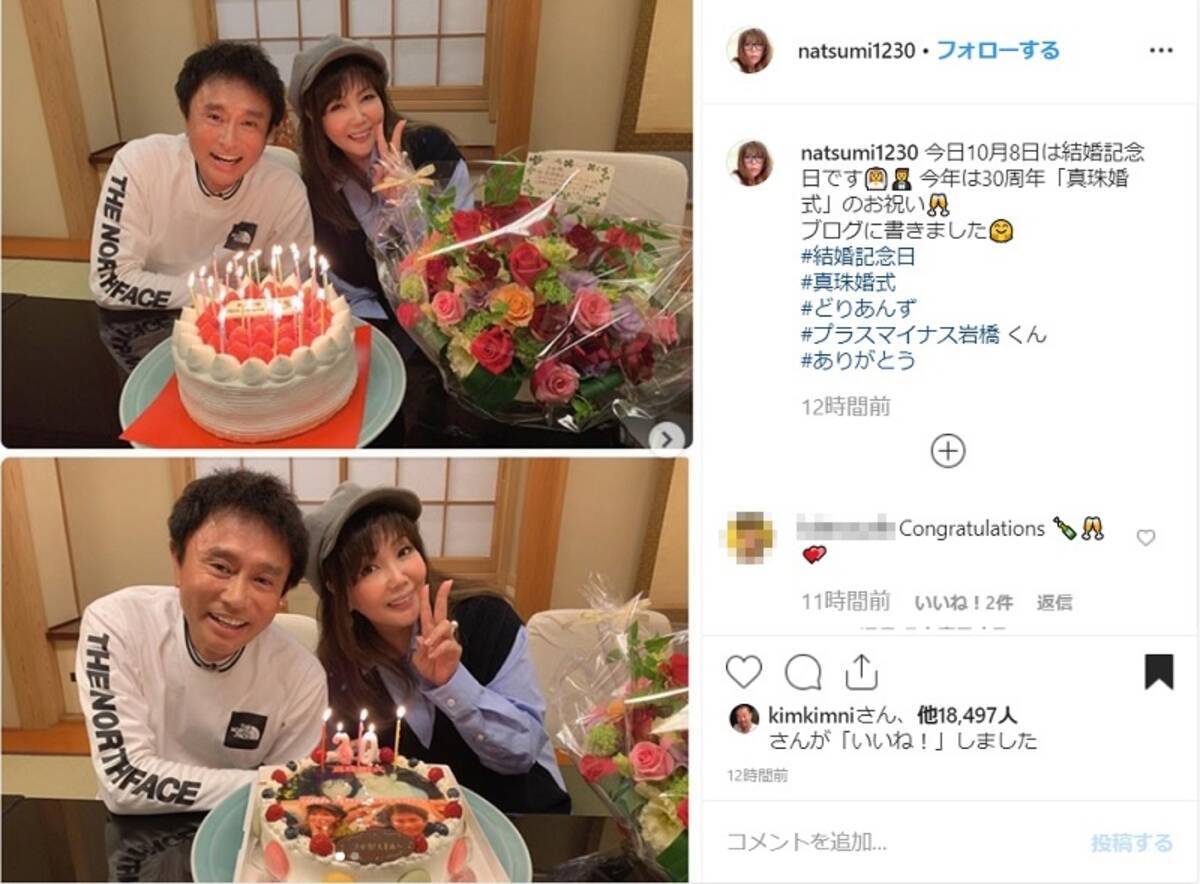 浜田雅功 小川菜摘夫婦が30回目となる 真珠婚式 をお祝い 19年10月9日 エキサイトニュース
